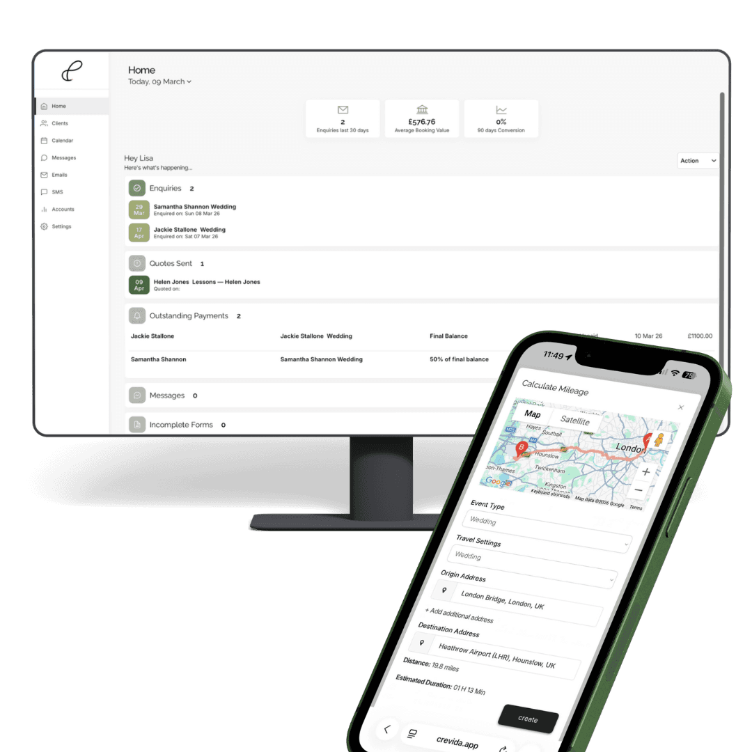 Crevida brings enquiries, quotes, contracts, bookings, payments and client communication together in one organised platform built for the way wedding businesses actually run.