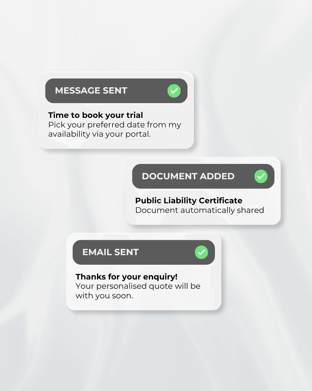 Automatically create professional quotes based on selected services so you can respond to enquiries in seconds.